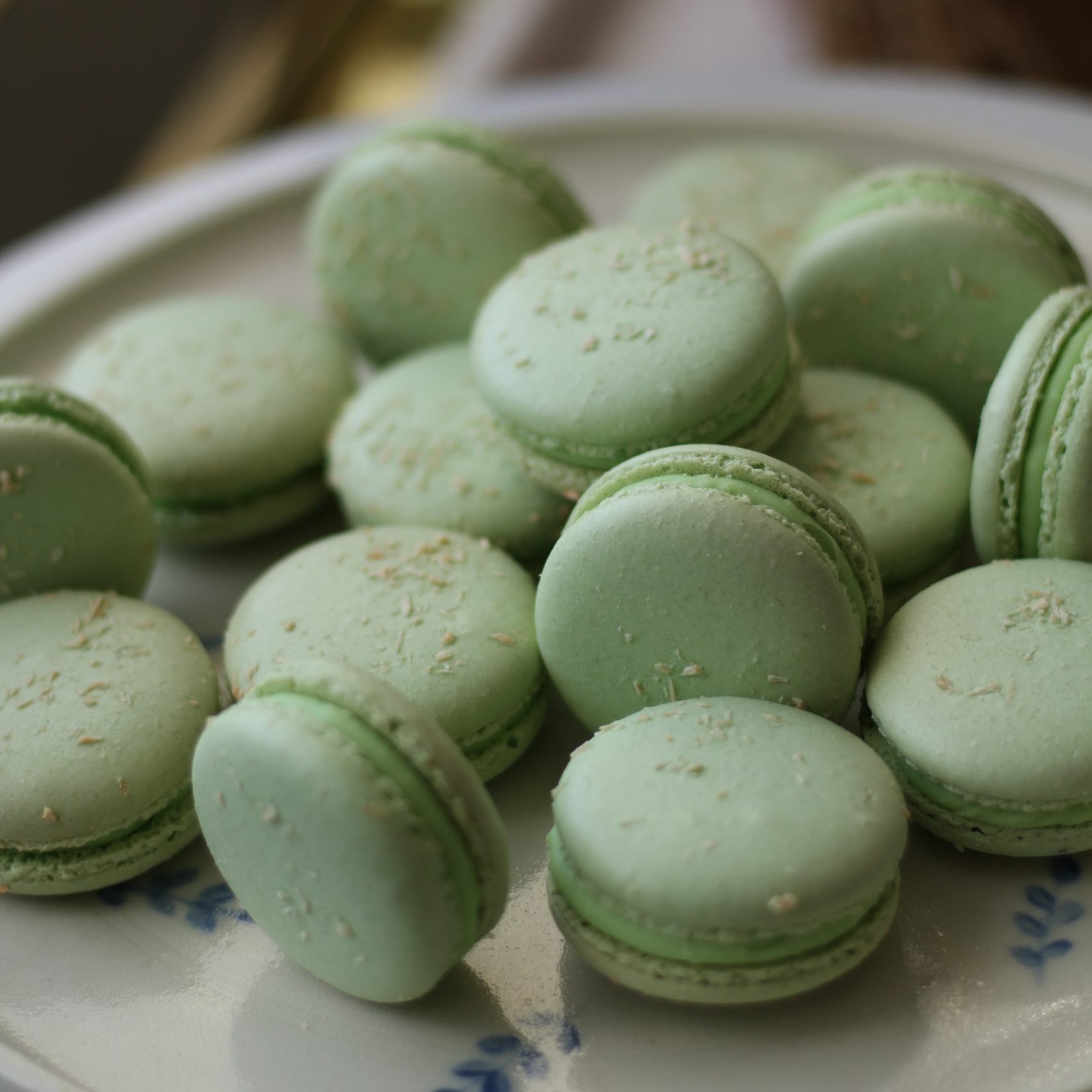 Our macarons are made with almond meal, egg whites, sugar, butter, cream and natural flavourings.